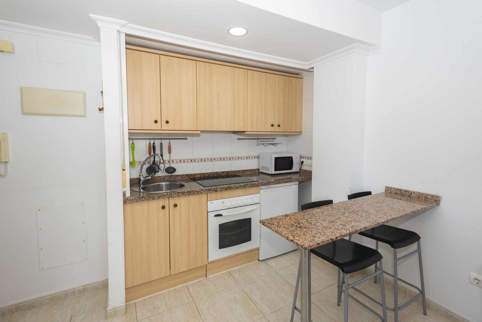Apartamento con una superficie de 50 metros cuadrados distribuidos en 1 dormitorio, 1 baño, salón-comedor, cocina americana y terraza con vistas al mar y al Peñón de Ifach.