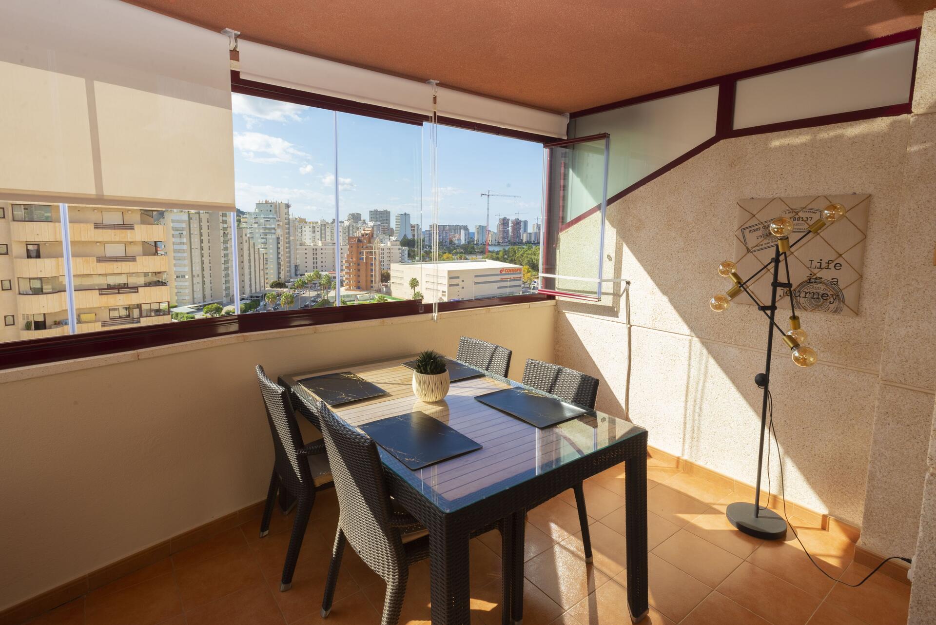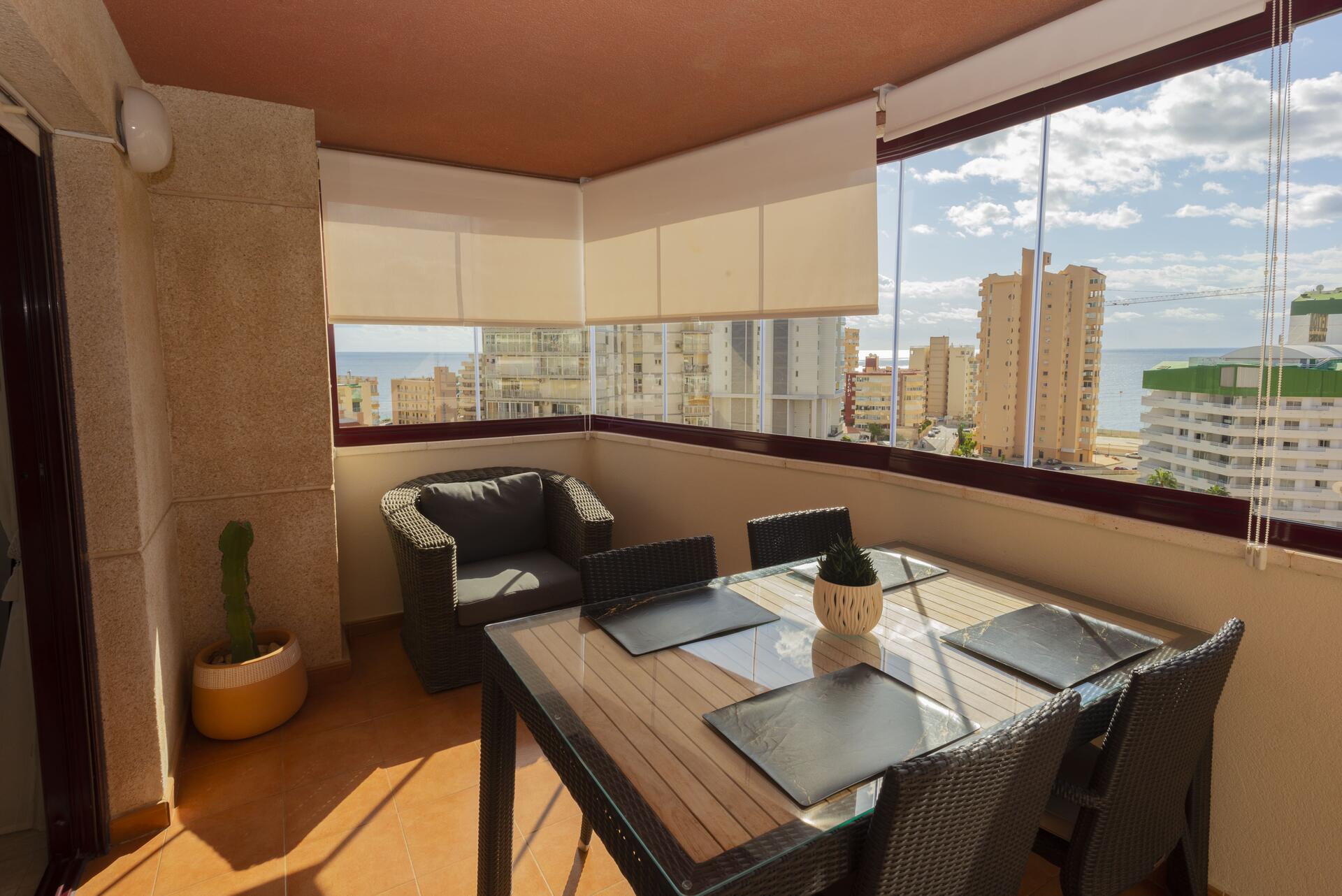 Tambien tiene una amplia terraza acristalada con mesa y cuatro sillas, para disfrutar de las magnificas vistas al mar que tiene. y otra terraza acristalada con vistas a la montaña.