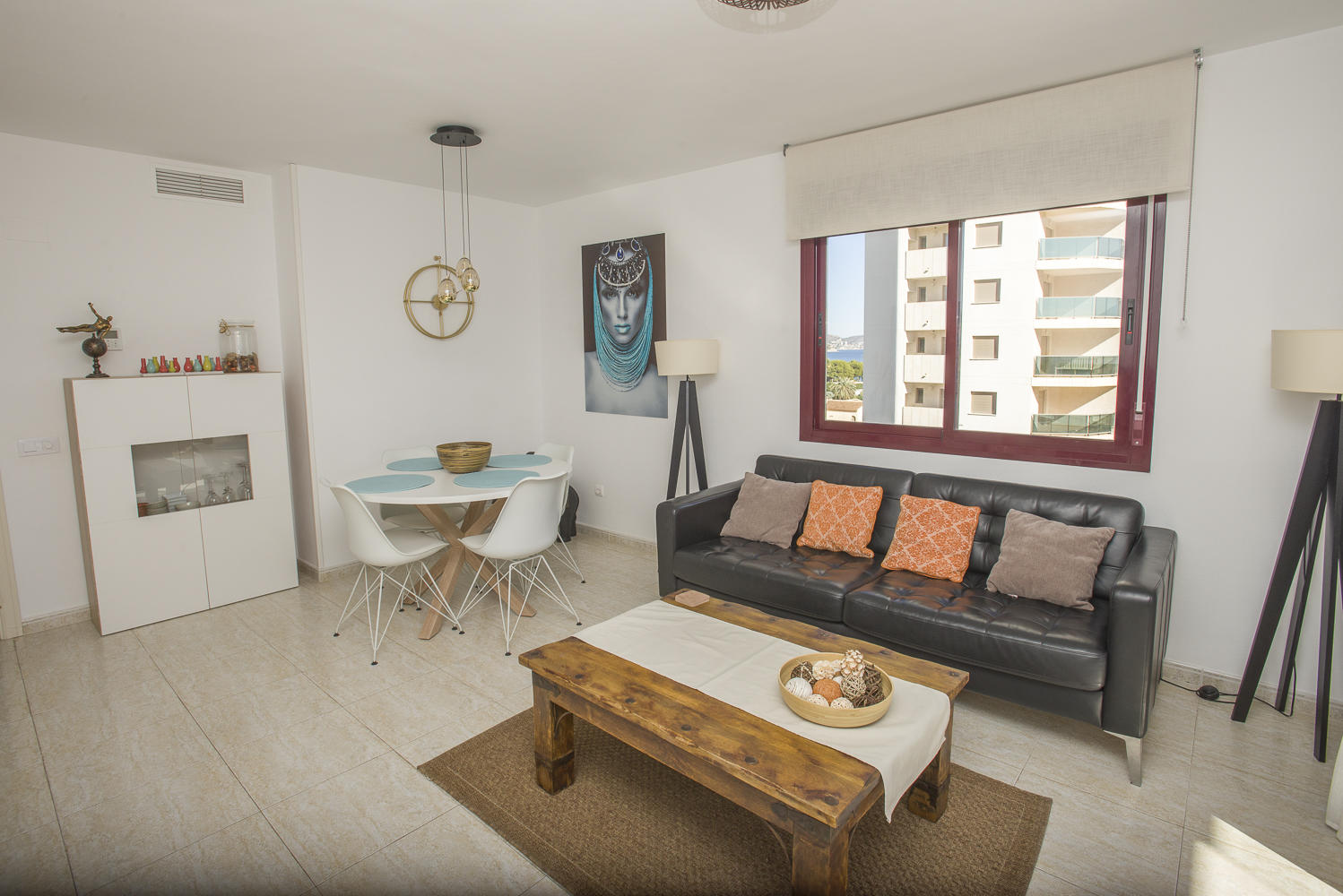 Apartamento con una superficie de 90 metros cuadrados distribuidos en 2 dormitorios, 1 baño y 1 aseo, salón-comedor, cocina independiente y terraza con vistas al mar y al Peñón de Ifach.