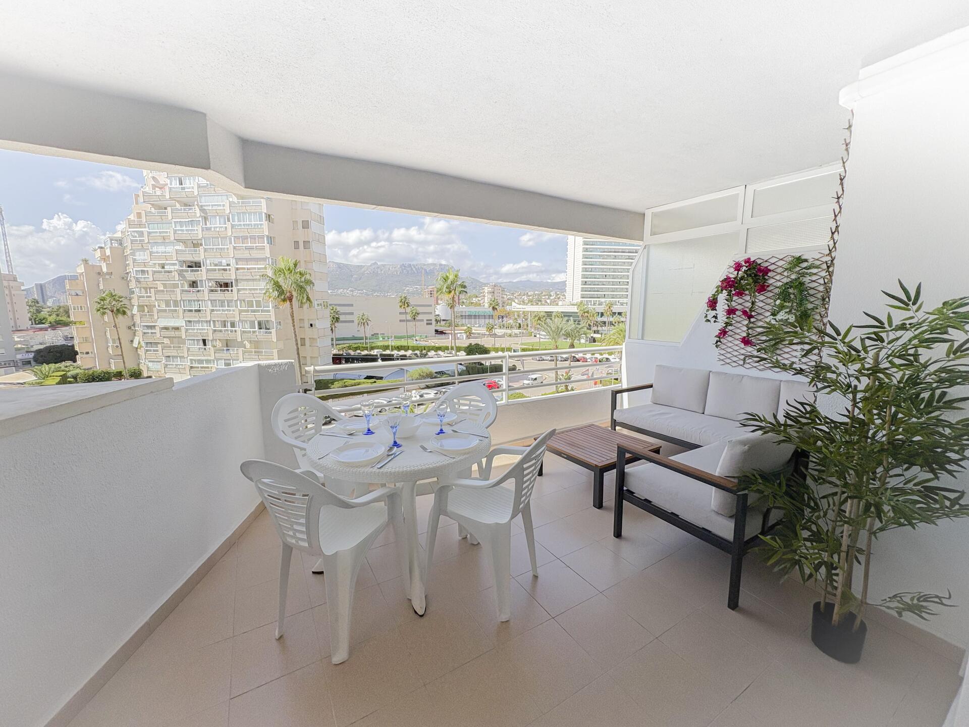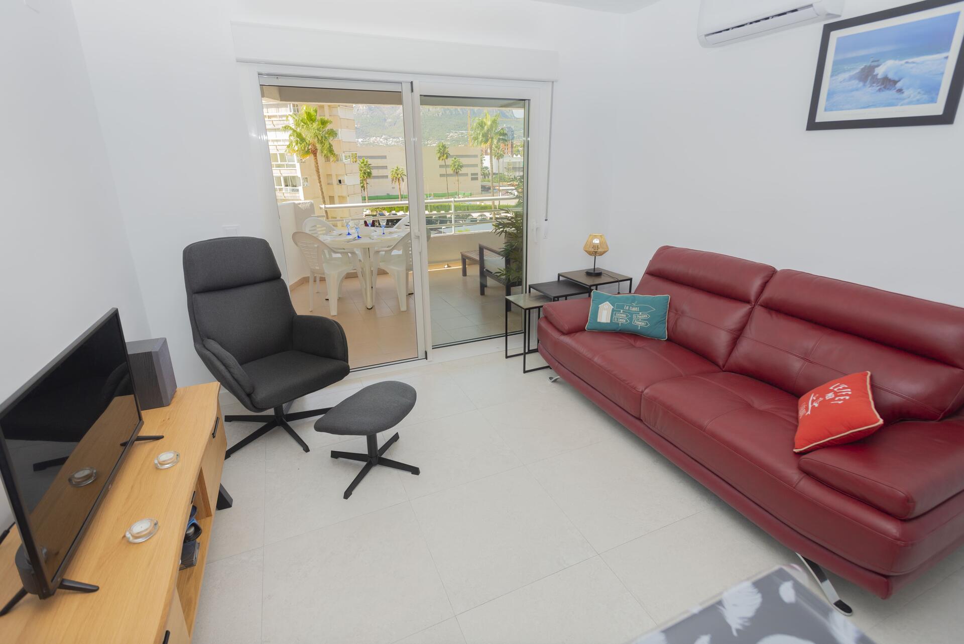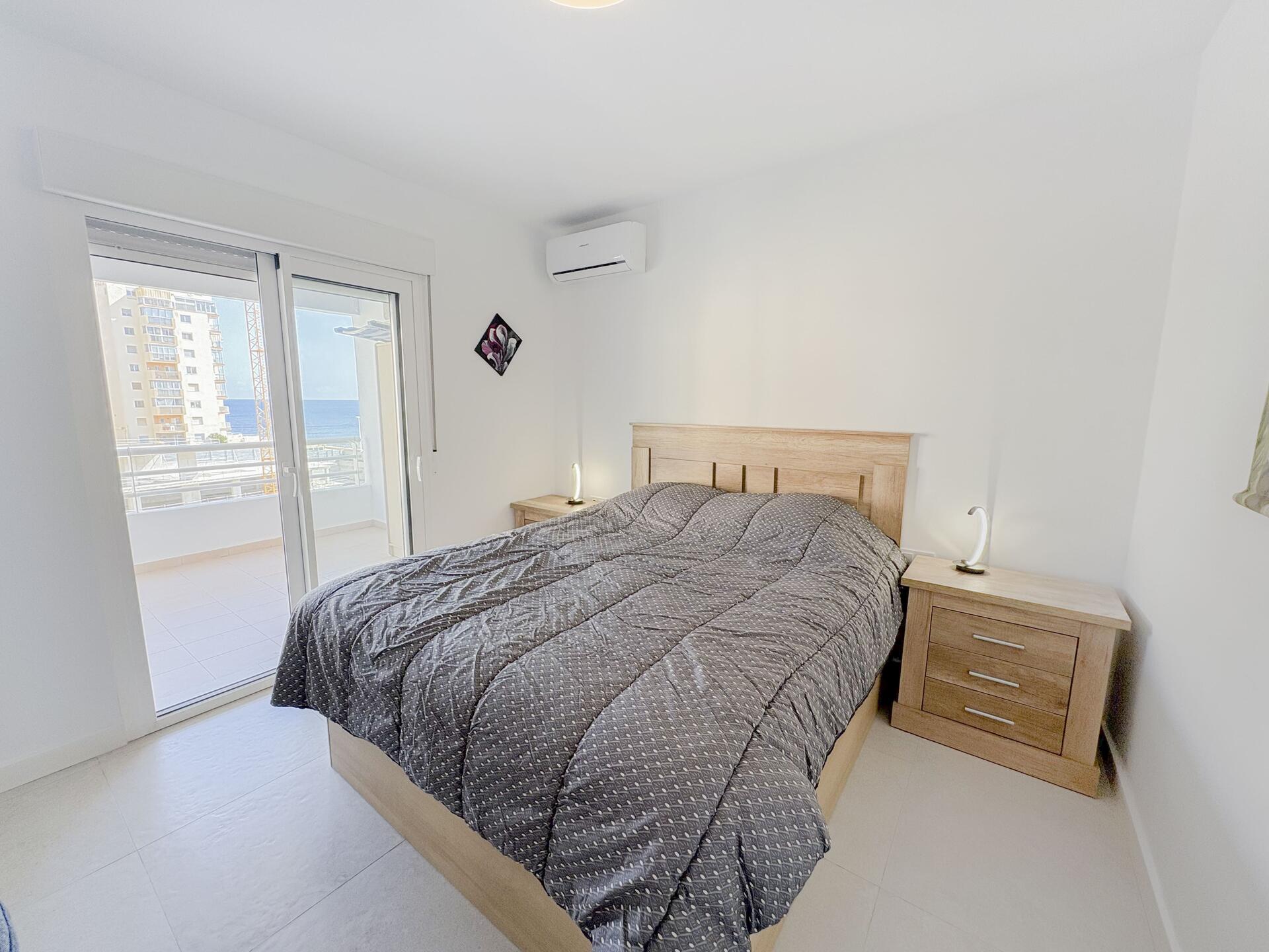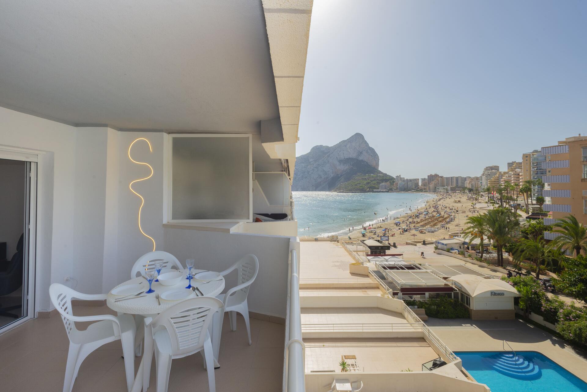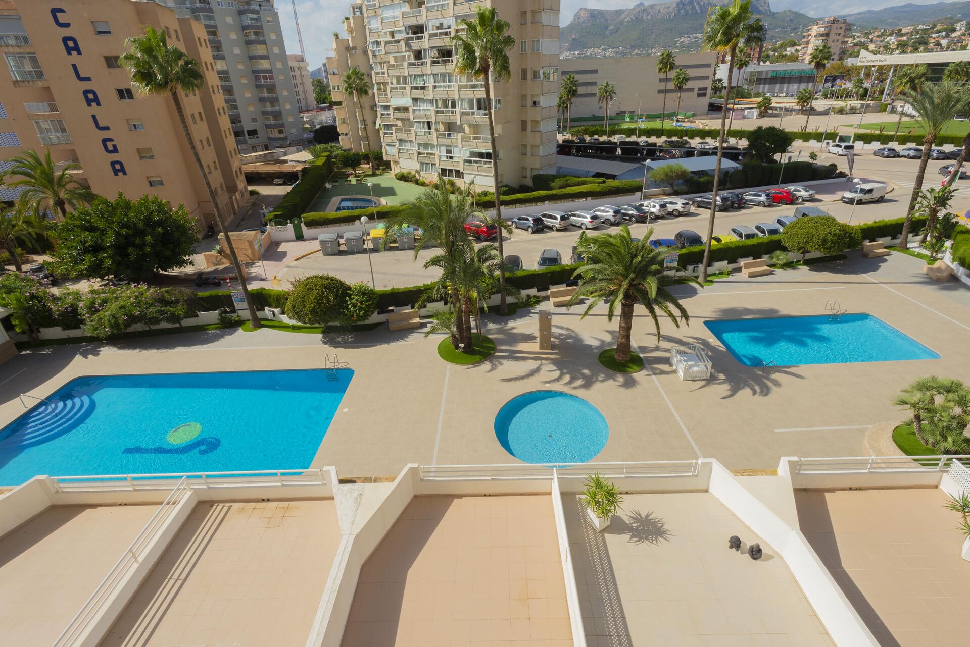 Apartamento con Aire Acondicionado situado en la planta 4 de la escalera 3 del Edificio Esmeralda, con vistas al mar Mediterráneo en Calpe. Apartamento con Internet por Fibra Óptica, superficie construida de 90 metros cuadrados distribuidos en 2 dormitorios, con 1 Cama Matrimonio (150cm),y 1 cama individuales (90 cm), 1 cuarto de baño con ducha y 1 aseo, salón-comedor con un sofás, cocina americana con horno, microondas, nevera y cocina de vitro, terraza cubierta con orientación OESTE con vistas al mar. El edificio Esmeralda tiene 3 piscinas comunitarias con área de descanso su alrededor. Capacidad Máxima 4 Adultos.