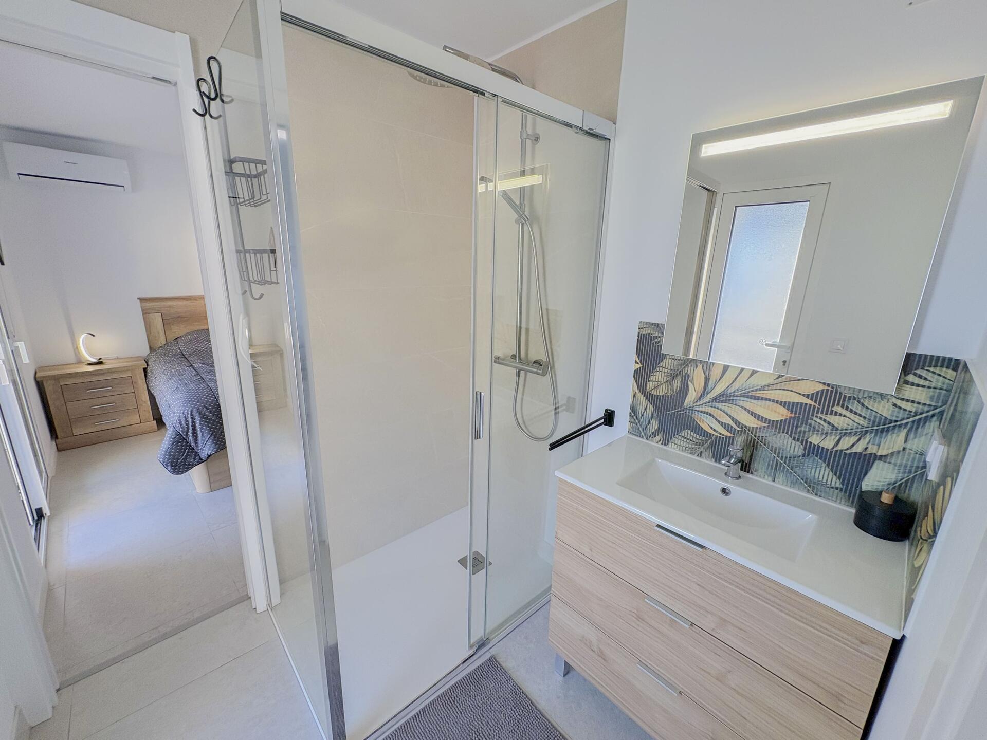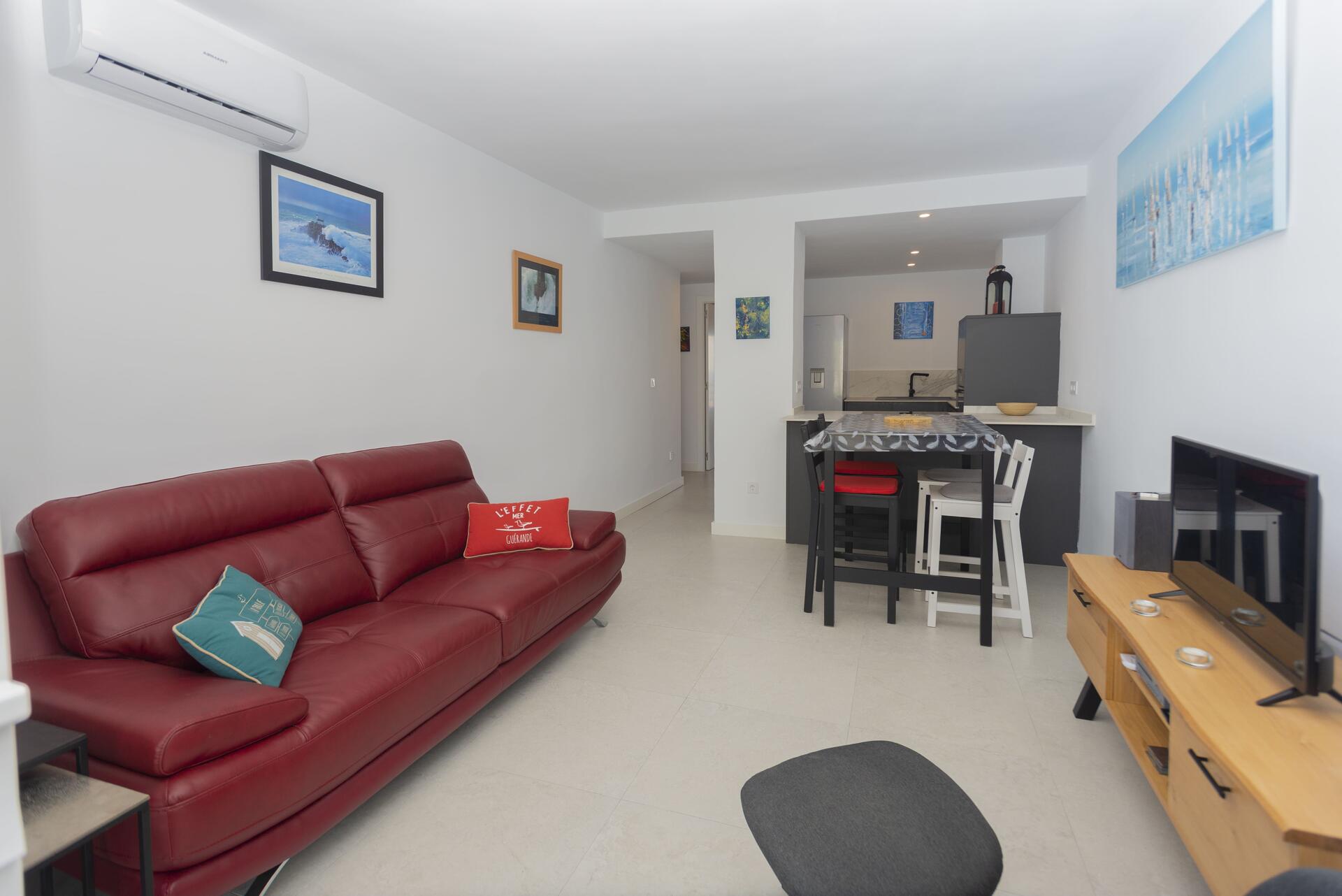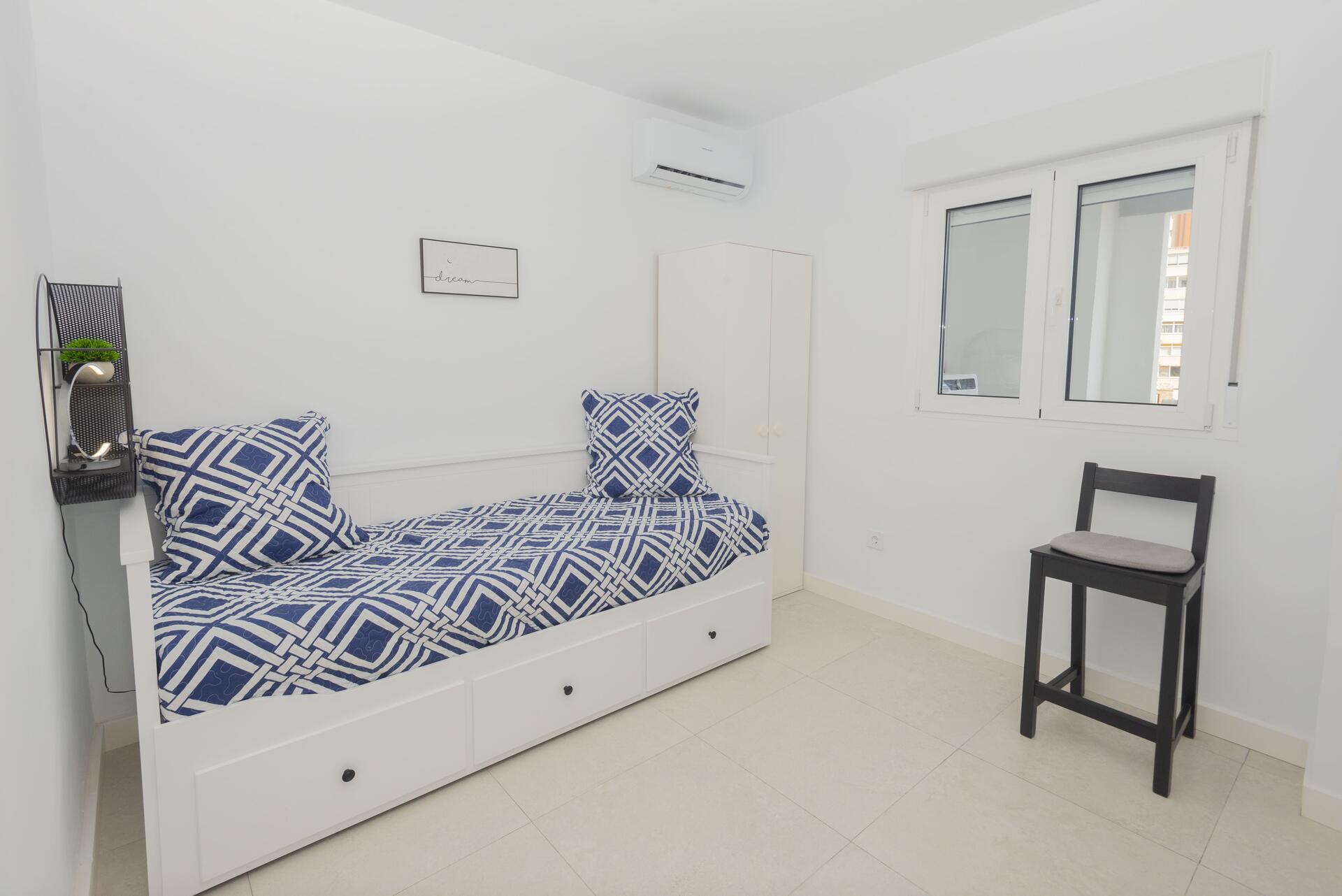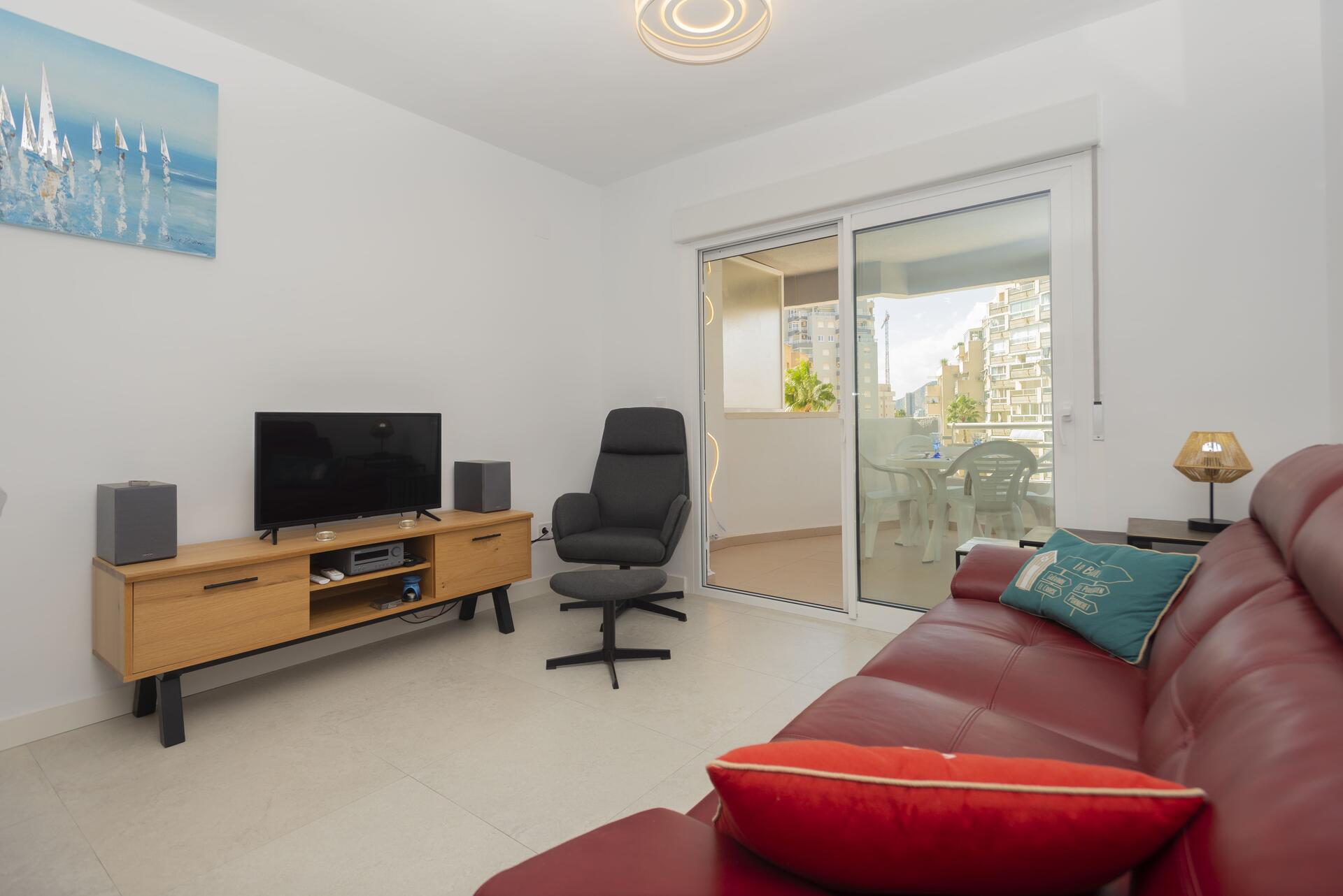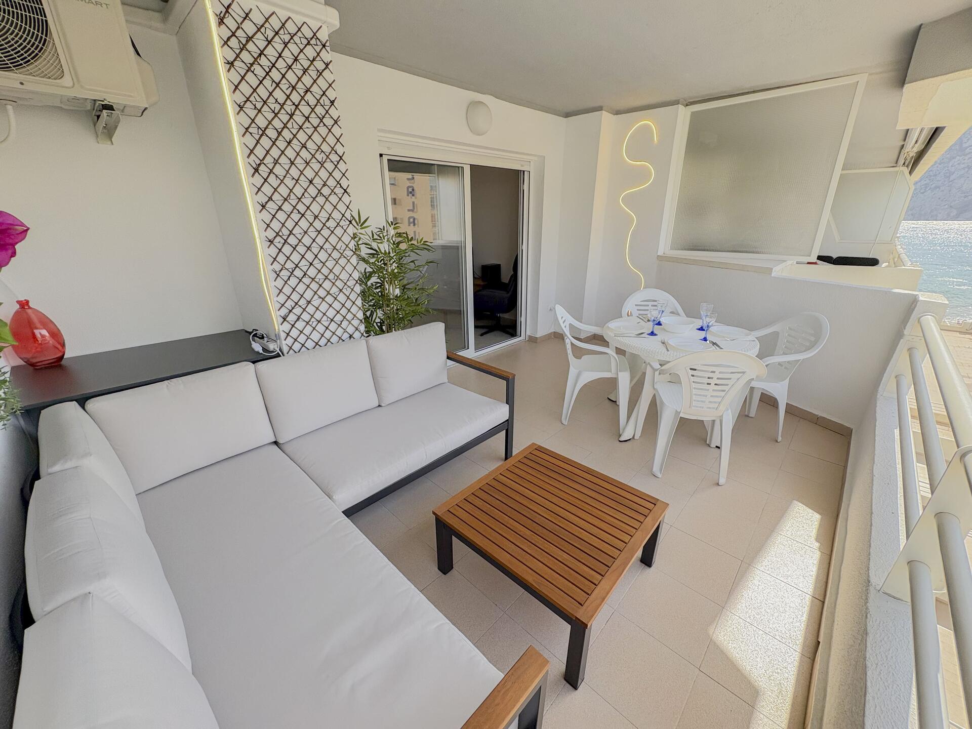 Apartamento con Aire Acondicionado situado en la planta 4 de la escalera 3 del Edificio Esmeralda, con vistas al mar Mediterráneo en Calpe. Apartamento con Internet por Fibra Óptica, superficie construida de 90 metros cuadrados distribuidos en 2 dormitorios, con 1 Cama Matrimonio (150cm),y 1 cama individuales (90 cm), 1 cuarto de baño con ducha y 1 aseo, salón-comedor con un sofás, cocina americana con horno, microondas, nevera y cocina de vitro, terraza cubierta con orientación OESTE con vistas al mar. El edificio Esmeralda tiene 3 piscinas comunitarias con área de descanso su alrededor. Capacidad Máxima 4 Adultos.
